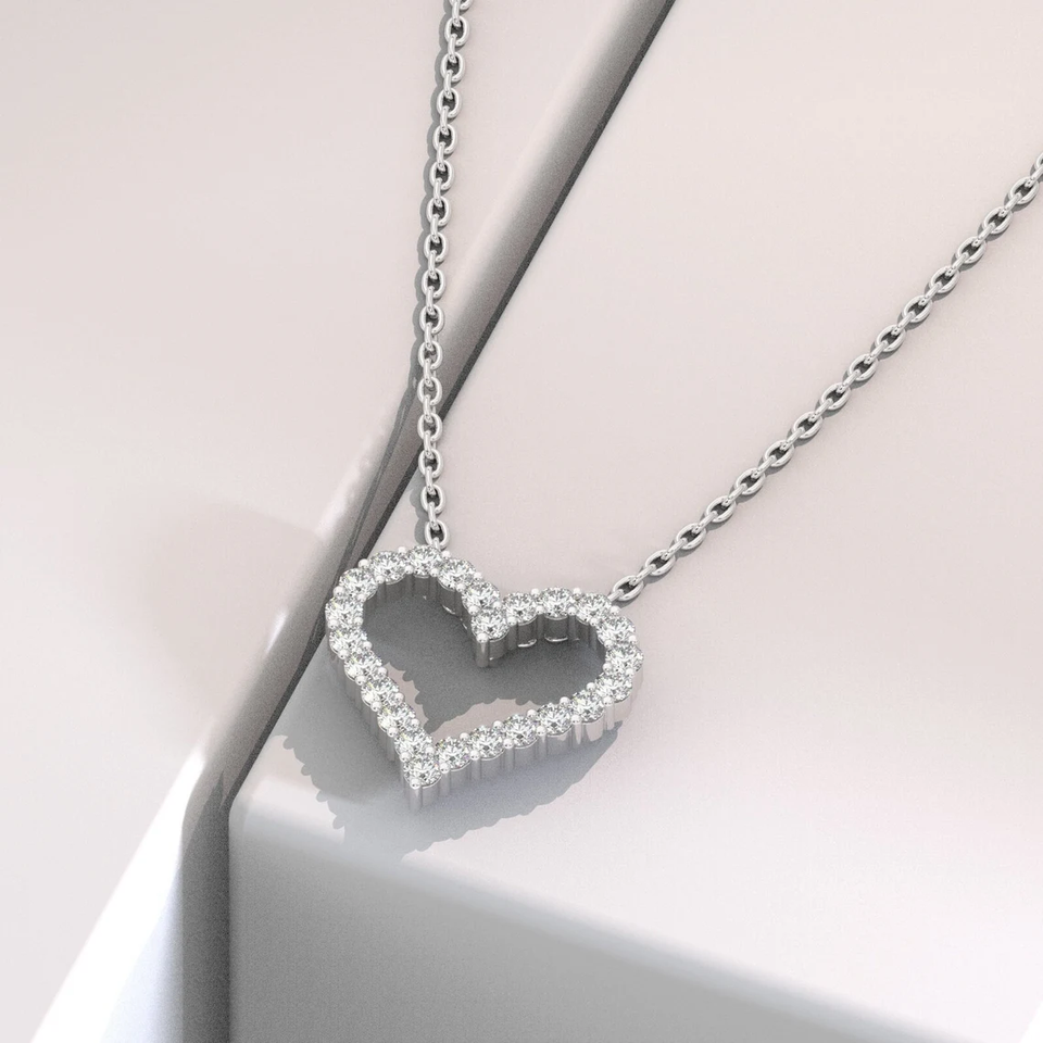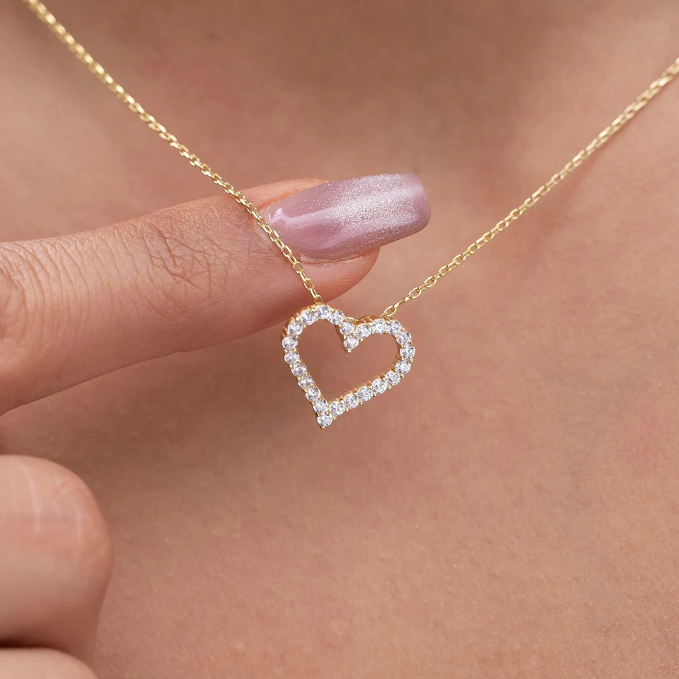Product name:14K Solid Gold Open Heart Shape Diamond Charm Pendant Necklace