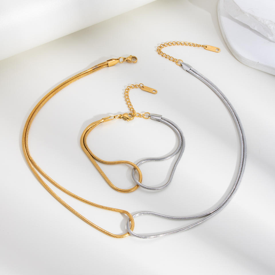 New Trendy Minimalist Stainless Steel Necklace Earrings Ring Set 14k Gold Plated Durable Non-Allergenic Women's Gift for Wedding