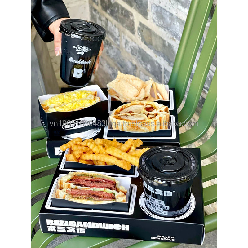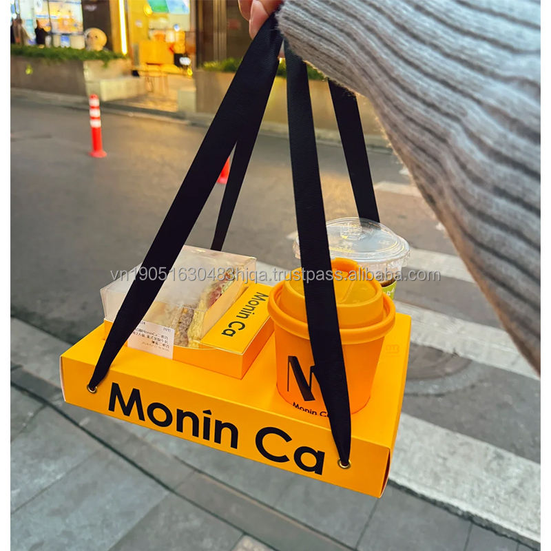 Nouvelle boîte de transport tendance personnalisée pour brunch à emporter, avec compartiments pour sandwichs, et support pour boissons et plats, avec poignée