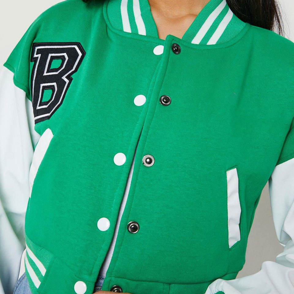 Veste universitaire courte tendance pour femmes, fabrication professionnelle, vestes universitaires courtes pour femmes en couleur unie