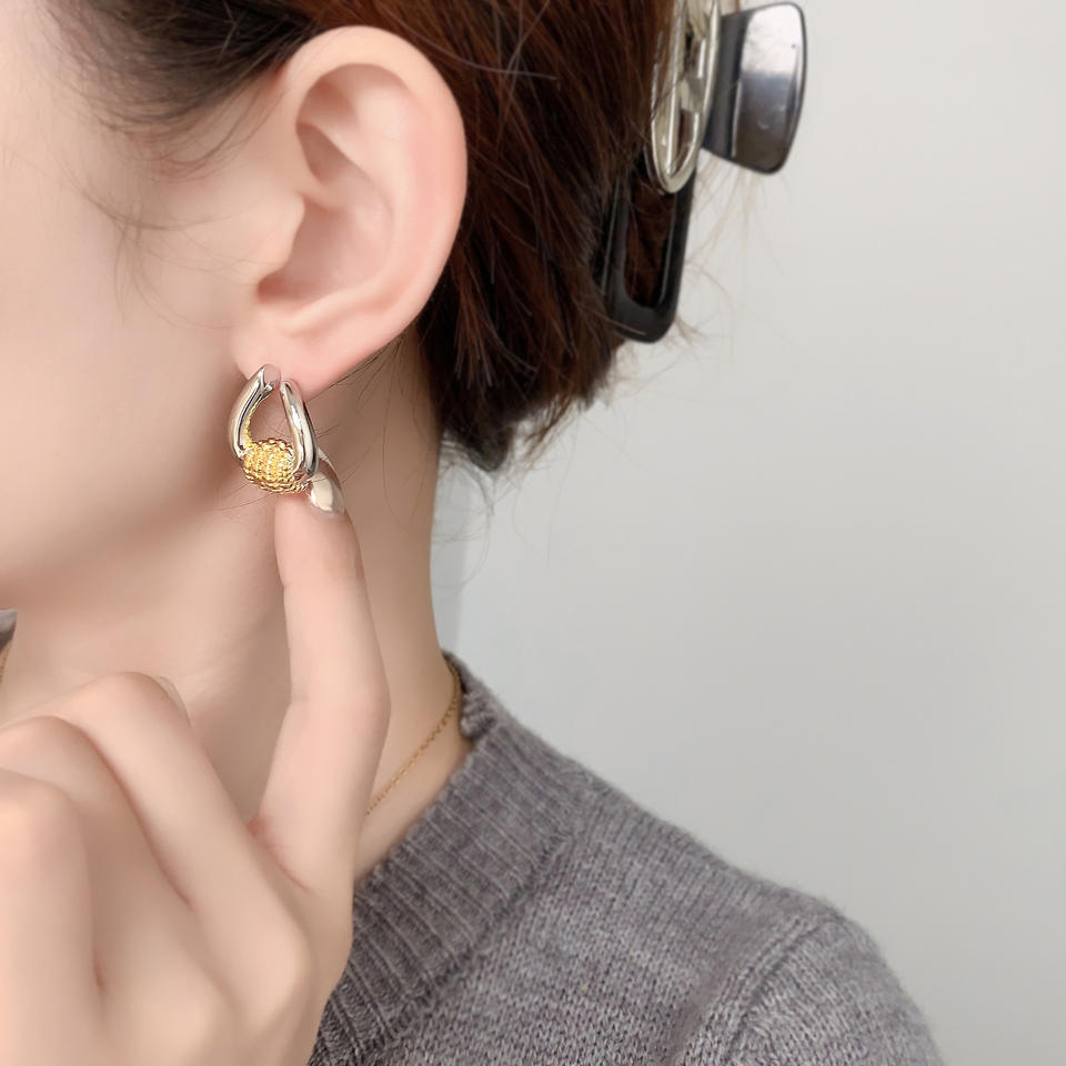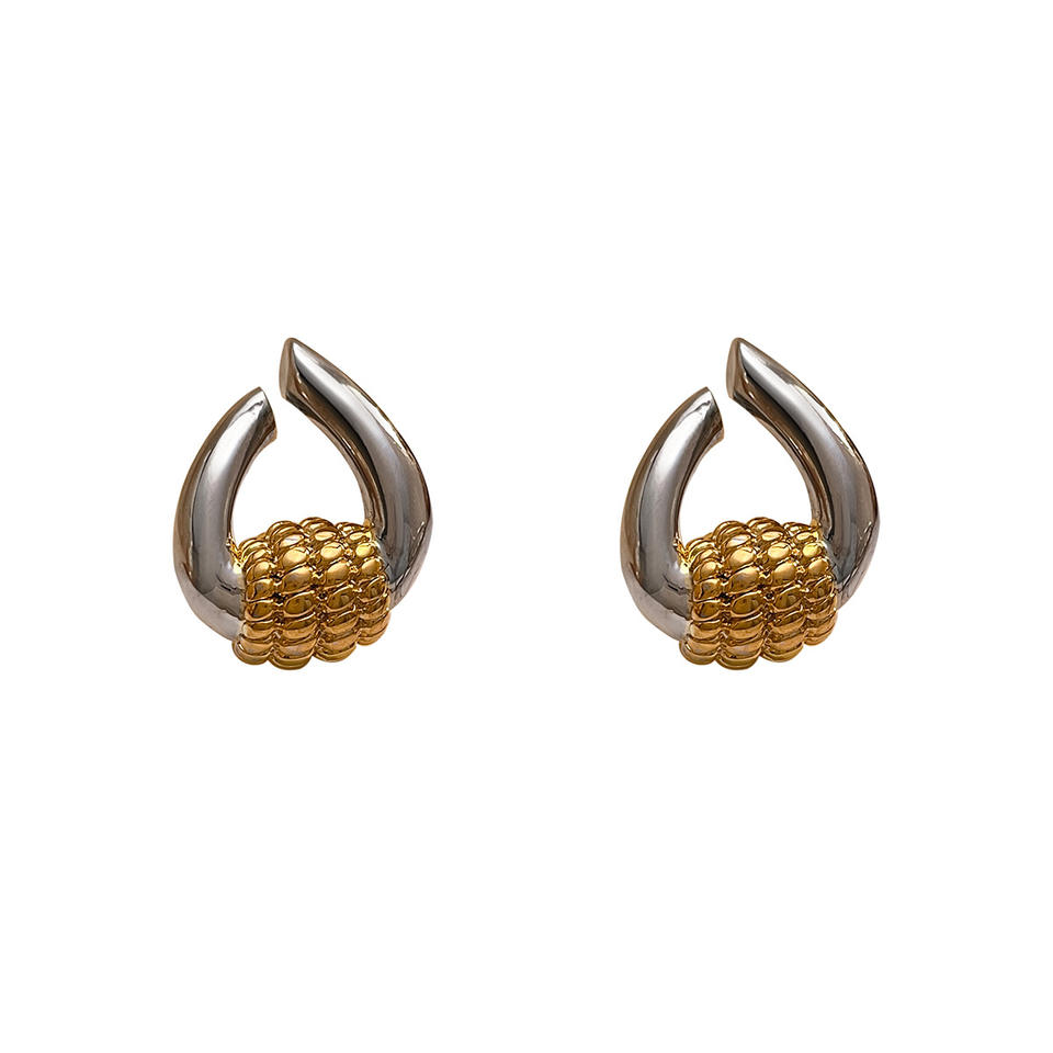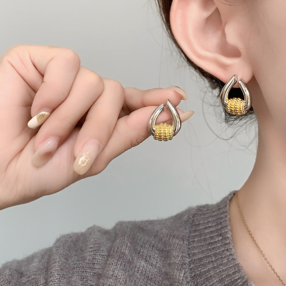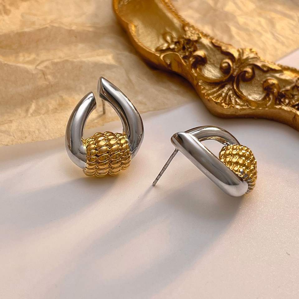 Nouvelles boucles d'oreilles clous tendance pour femme, inspirées des créateurs, en laiton bicolore, géométriques, texturées torsadées et polies.