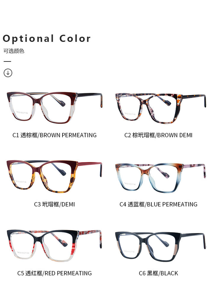 Nouvelles lunettes à la mode de couleur mixte personnalisées en gros exquis européen et américain oeil de chat printemps pied plein cadre
