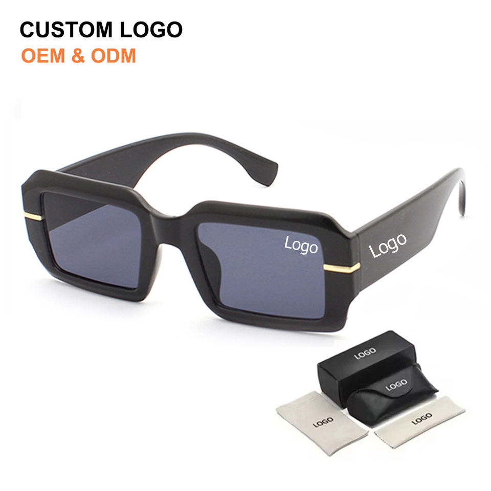 New Trendy Rectangle Custom Gold Decorate Luxury Sunglasses Fashion Designer Small Rectangular Sun Glasses for Women Men Shades