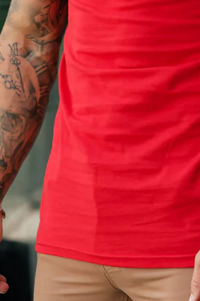 Nouveau à la mode côtelé col haut équipage rouge hommes T-Shirts Streetwear 100% coton respirant Gym Active Wear Logo personnalisé T-Shirt pour hommes