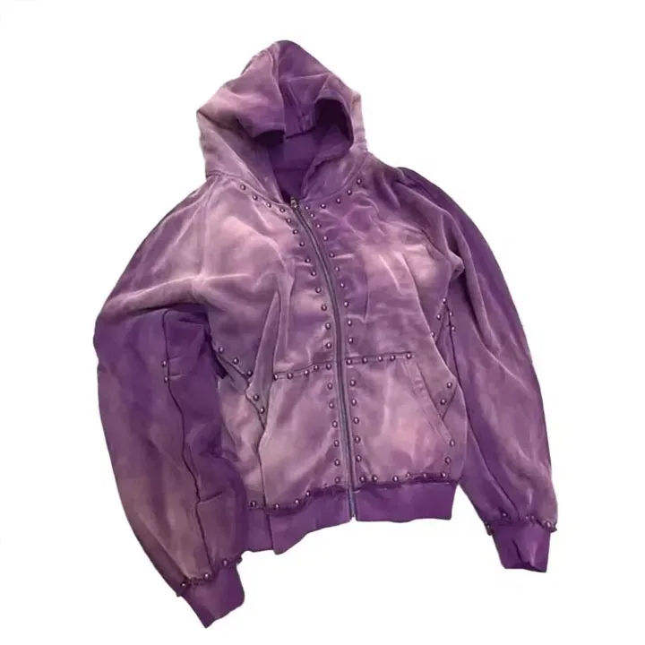 Nouveau Style à la mode soleil délavé fermeture éclair français éponge rue porter acide lavage 500 GSM sweats à capuche fermeture éclair poids lourd strass à capuche hommes