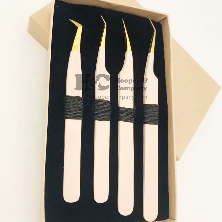 Pinces à épiler à logo personnalisé, nouvelles pinces à épiler en acier inoxydable pour extensions de cils, pointes en fibre dorée, ensembles durables en boîte, vison