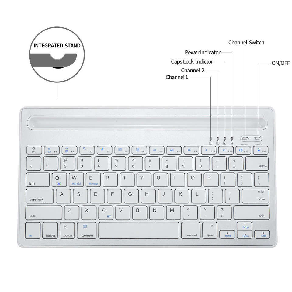 Nouveau clavier sans fil rechargeable 2,4 GHz ultra-fin à 78 touches avec inclinaison réglable pour tablette, téléphone et PC