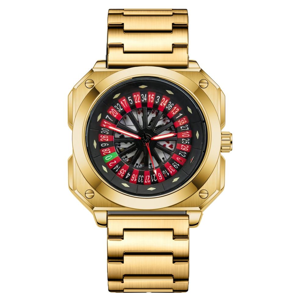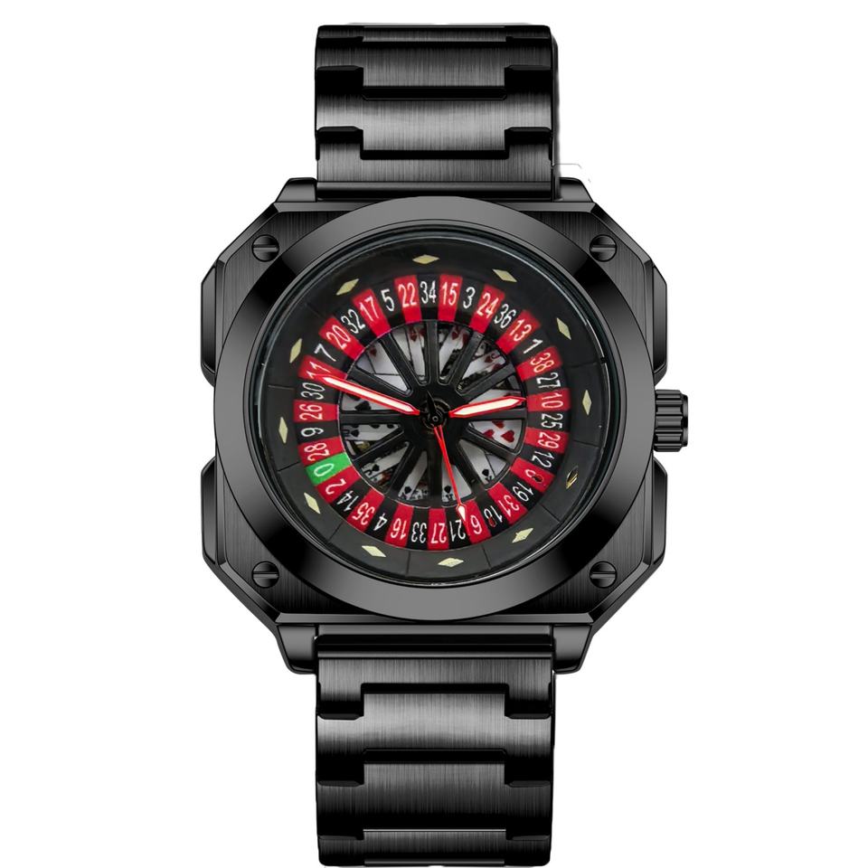 Montre pour homme au design unique, en acier inoxydable, avec grand cadran carré, logo personnalisé, montre de casino, roulette, montre pour homme