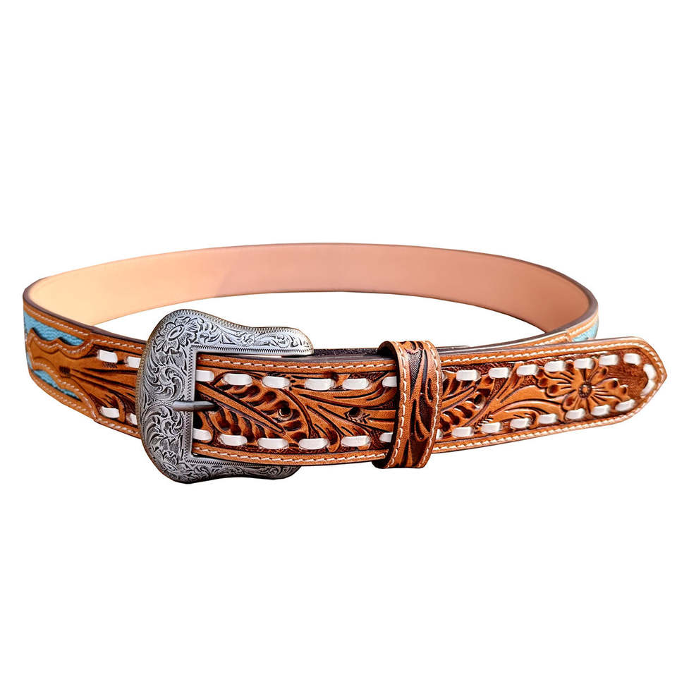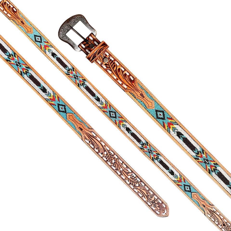 Nouvelle ceinture unisexe en cuir véritable, style western sculpté à la main, design perlé, boucle perforée classique R M INTERNATION RM-LB-5390