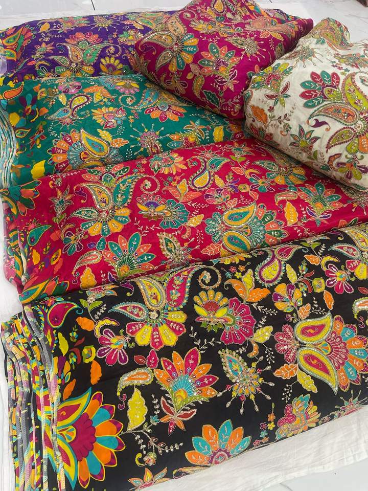 Nouveau travail de codage d'impression de position mis à jour pur tissu de soie crêpe naturel pour les femmes chiffons du fournisseur indien