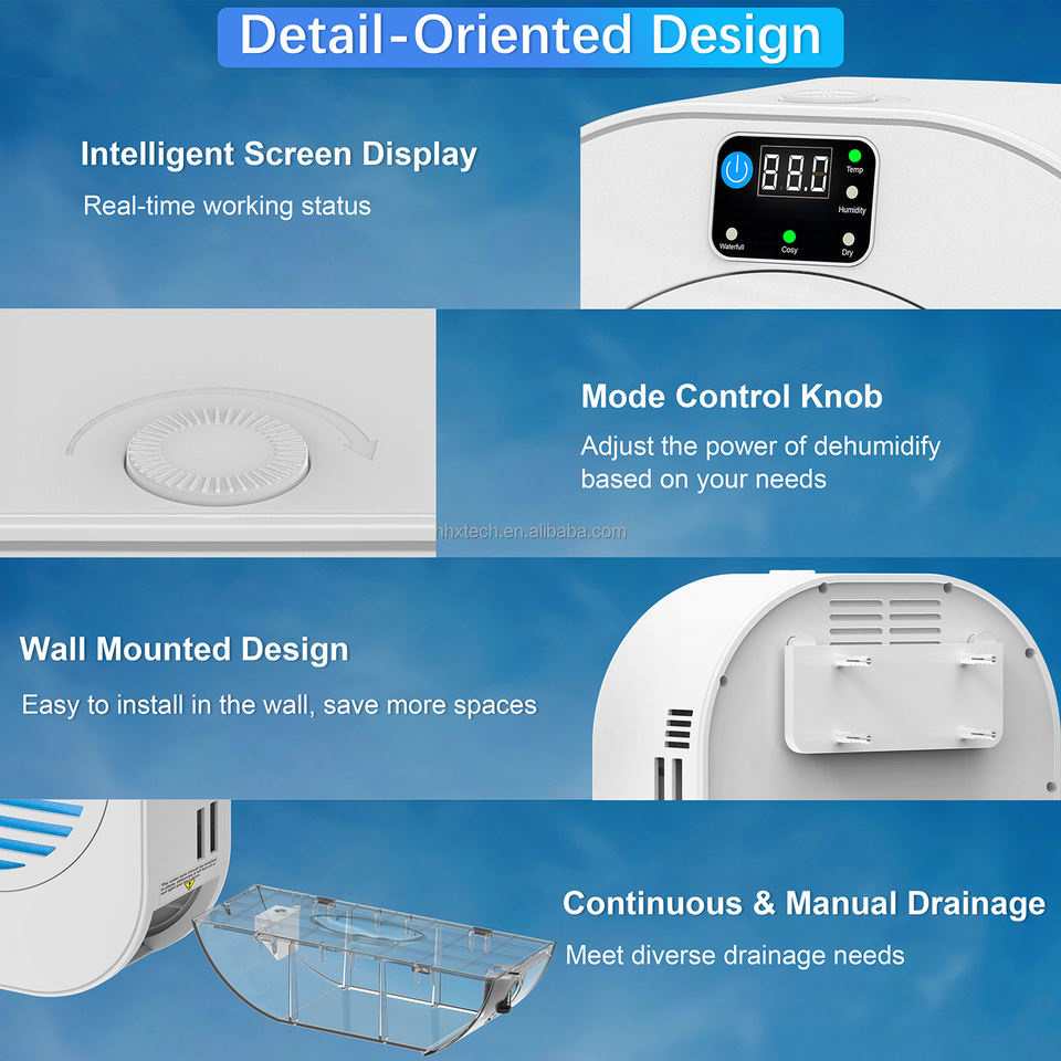 Connection de drainage externe, Redémarrage automatique, Fermeture complète de godet automatique, Dégivrage automatique, Contrôle automatique de l'hygrostat, Indicateur de Plein de Seau, LED D'affichage, Réservoir d'eau amovible, Filtre à air lavableFonction