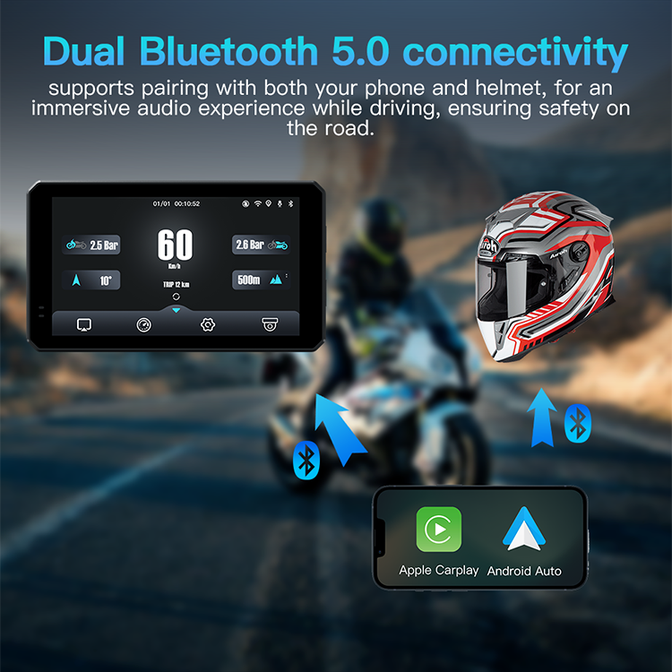 Nom du produit:Écran Carplay 6" pour moto, étanche IP68, Plug and Play