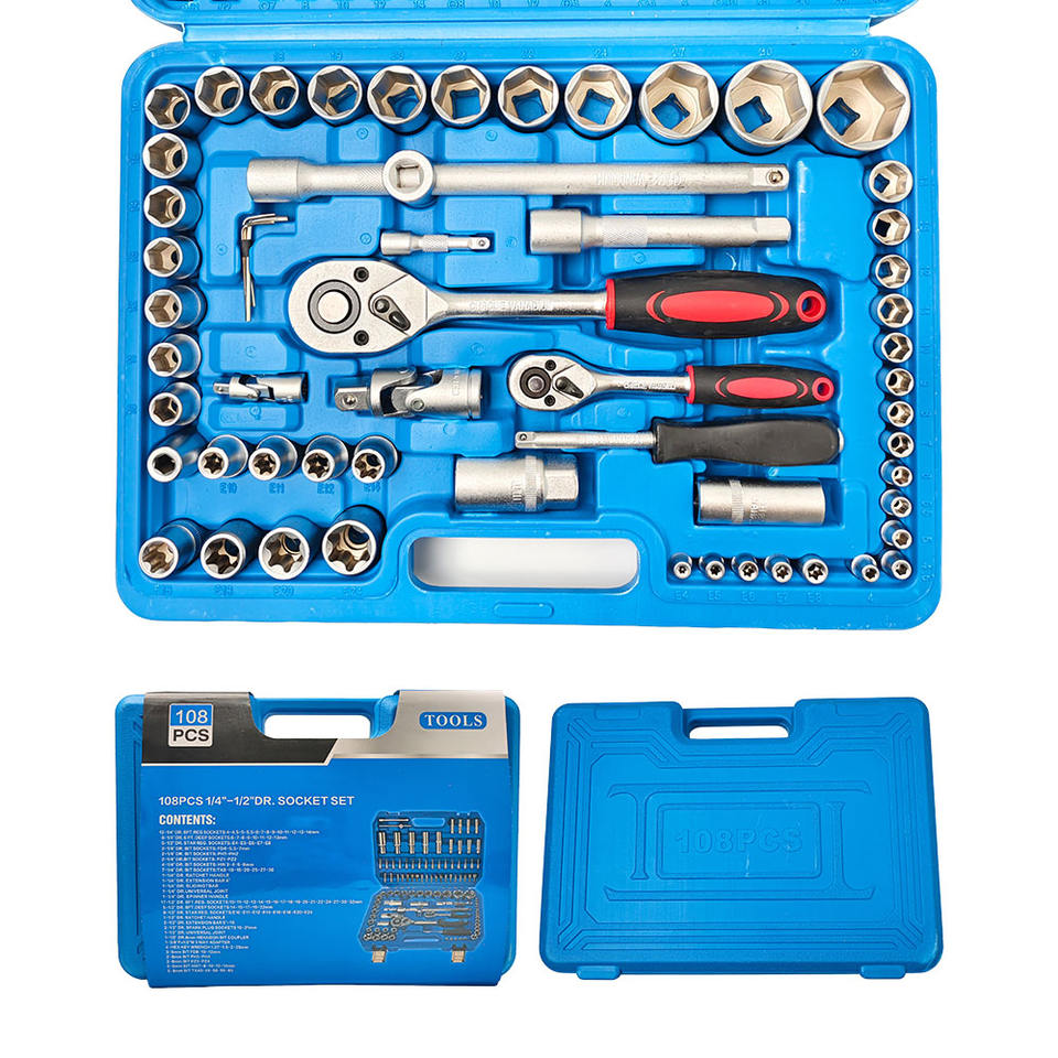 Nouvelle version améliorée du jeu de douilles de 108 pièces, ensemble d'outils de réparation automobile, différents modèles de clés à cliquet et de clés dynamométriques combinées