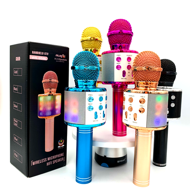 Nouvelle version améliorée Microphone sans fil WS-858L de karaoké Microphone sans fil micro de karaoké portable haut-parleur