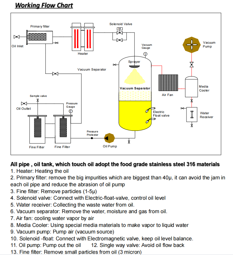 Type de filtration:Purificateur d'huile sous vide à terre pleine de qualité alimentaire