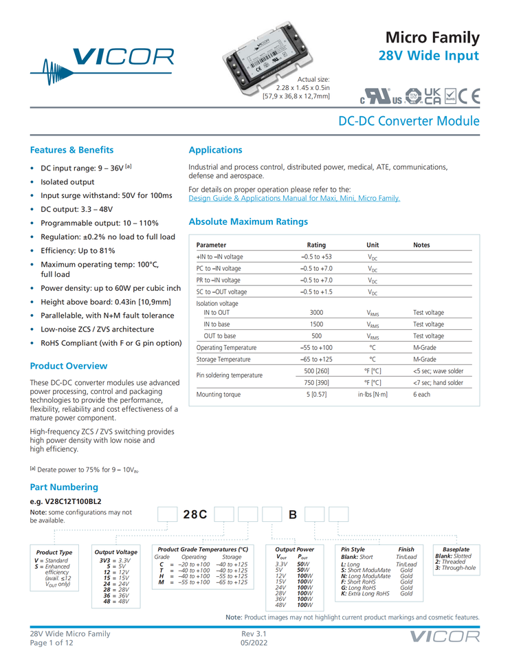 Isolated DC/DC Converters - Through Hole Watts- 10Description