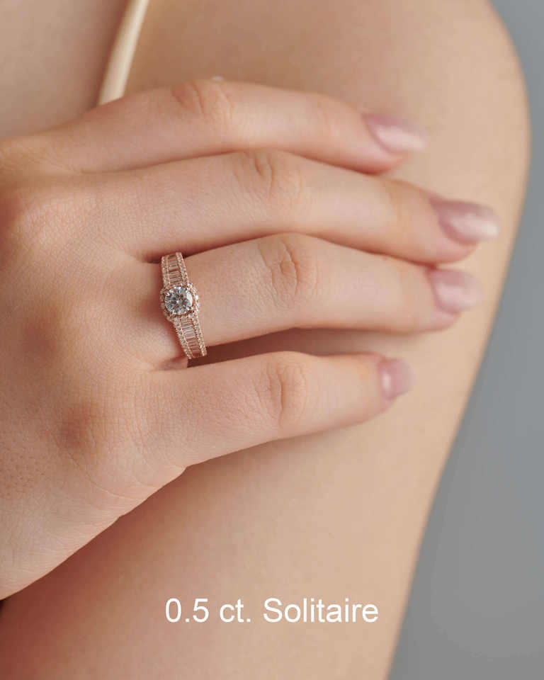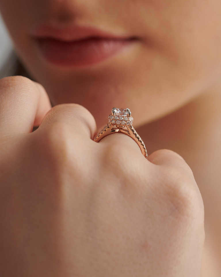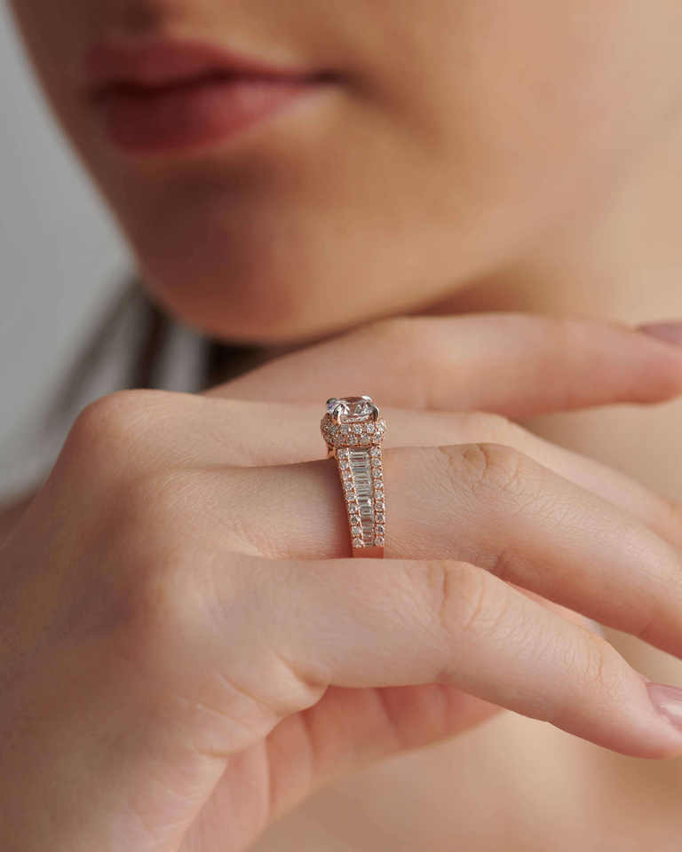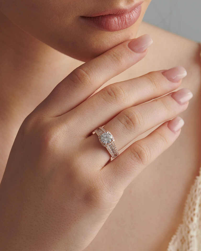 Nouveau Valentin cadeau coussin coupe Double bord Halo Baguette tige ronde Solitaire laboratoire cultivé diamant bijoux fins bague