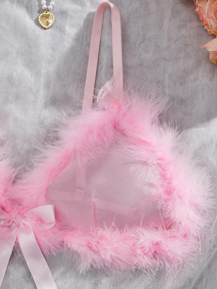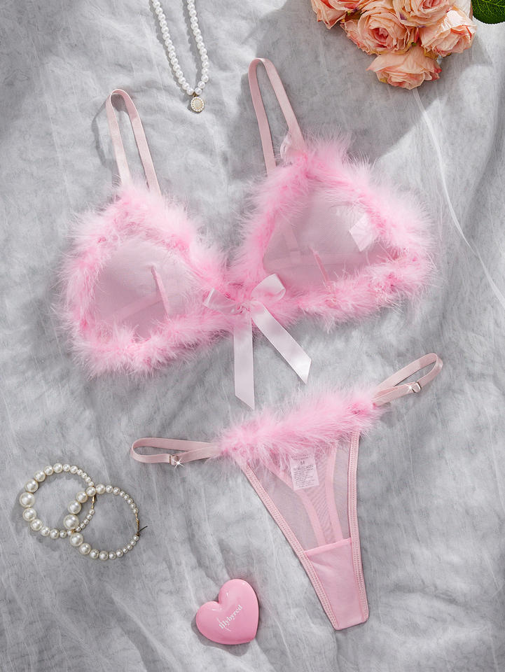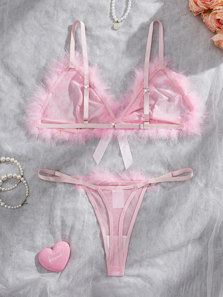 Nouvel ensemble de lingerie intime sexy en peluche pour la Saint-Valentin, deux pièces, soutien-gorge et culotte transparents, pour femme