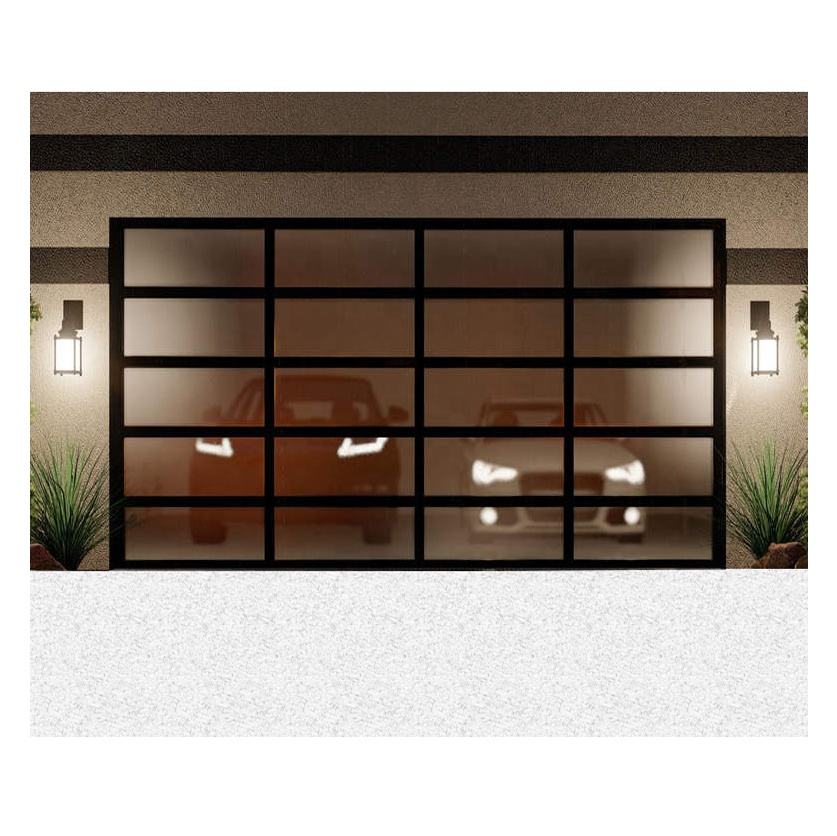 Nouvelle villa Porte de garage sectionnelle transparente bon marché Porte coulissante en verre isolé 16x7 Portes de garage doubles en aluminium Prix
