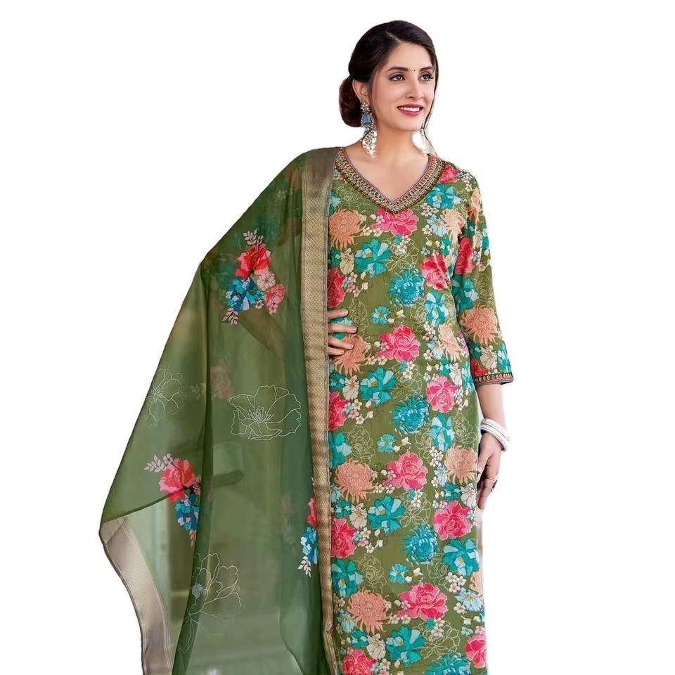 Nouveau Viscose pur coton avec fil et travail manuel avec Jacquard Organza imprimé dupatta Kurtis ensemble pour femme