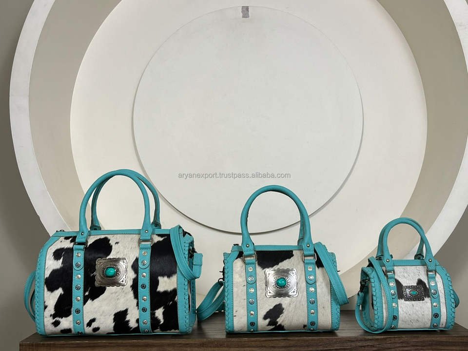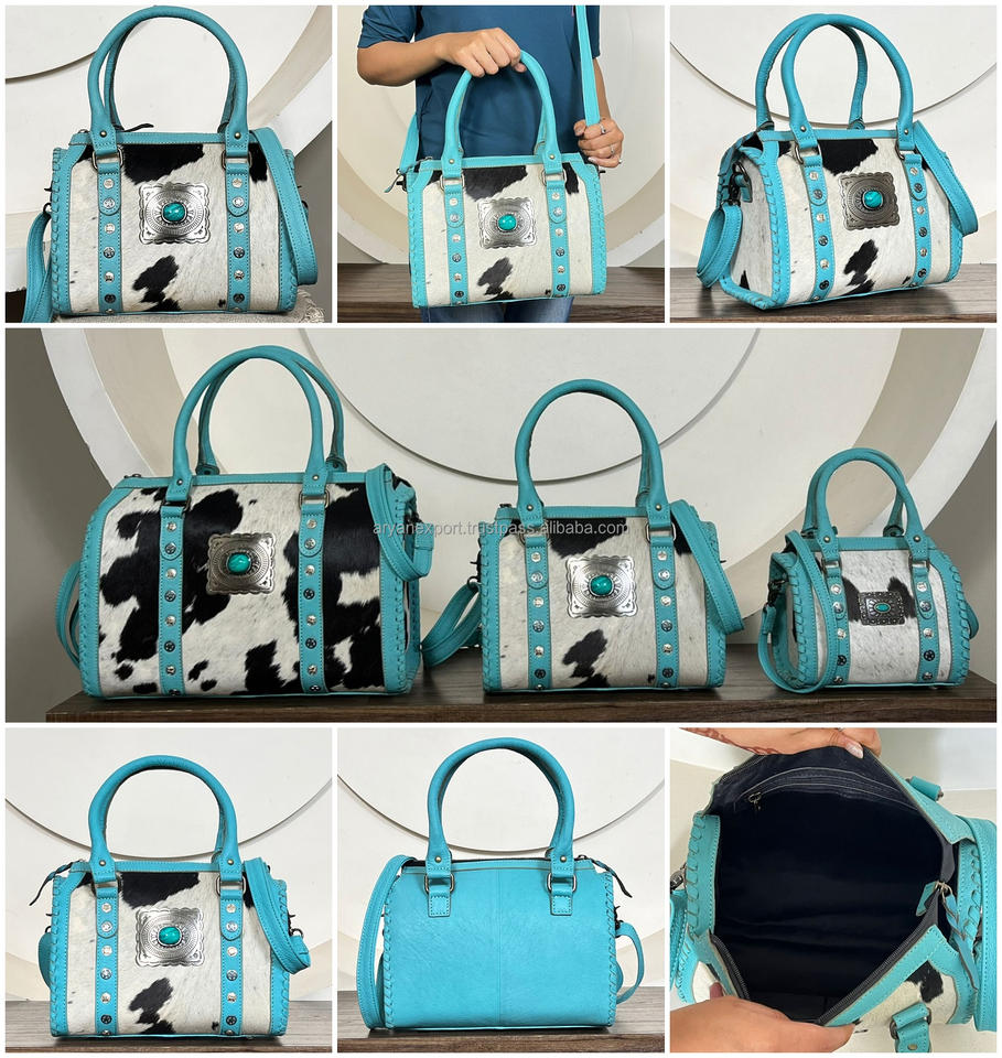 Nouveau sac Speedy en cuir de vachette turquoise de créateur occidental avec clous Concho, sac à main bandoulière pour femme, vente en gros