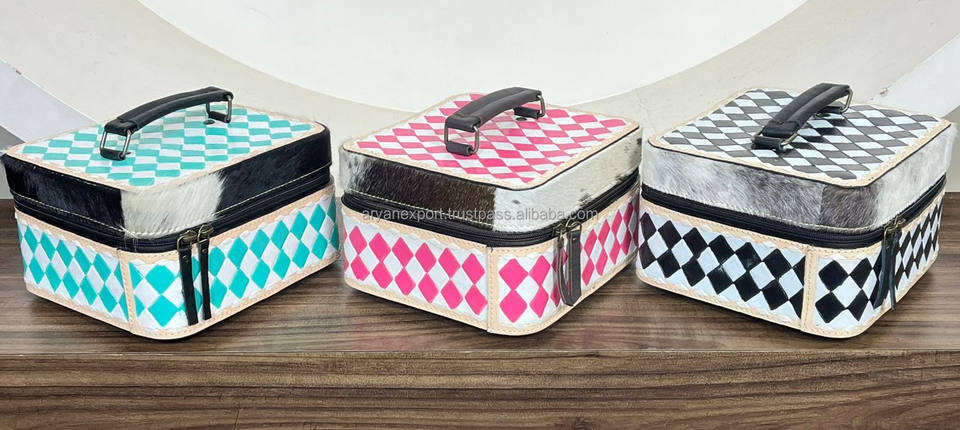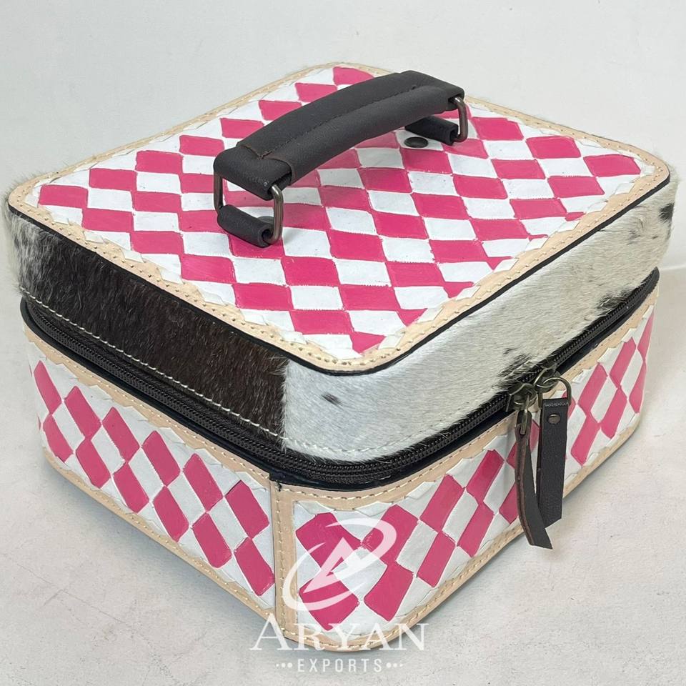 Product Name:Hand Tooled Checkered Leather Large Jewelry Case
