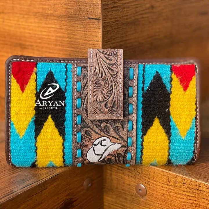 Designer Tooled Aztec Leather Clutch
