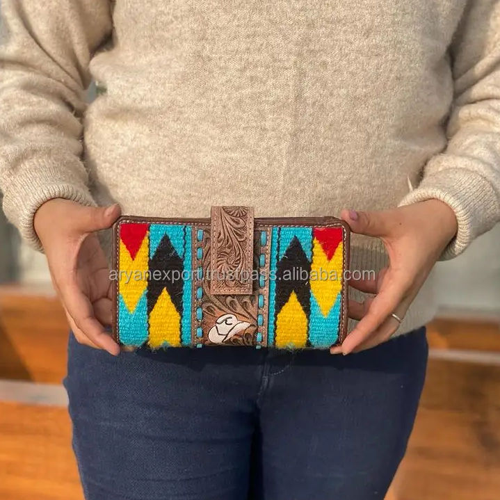 Nouvelle pochette en cuir style occidental aztèque, véritable cuir artisanal vintage brun, design unique de jeu de cartes, portefeuille en cuir