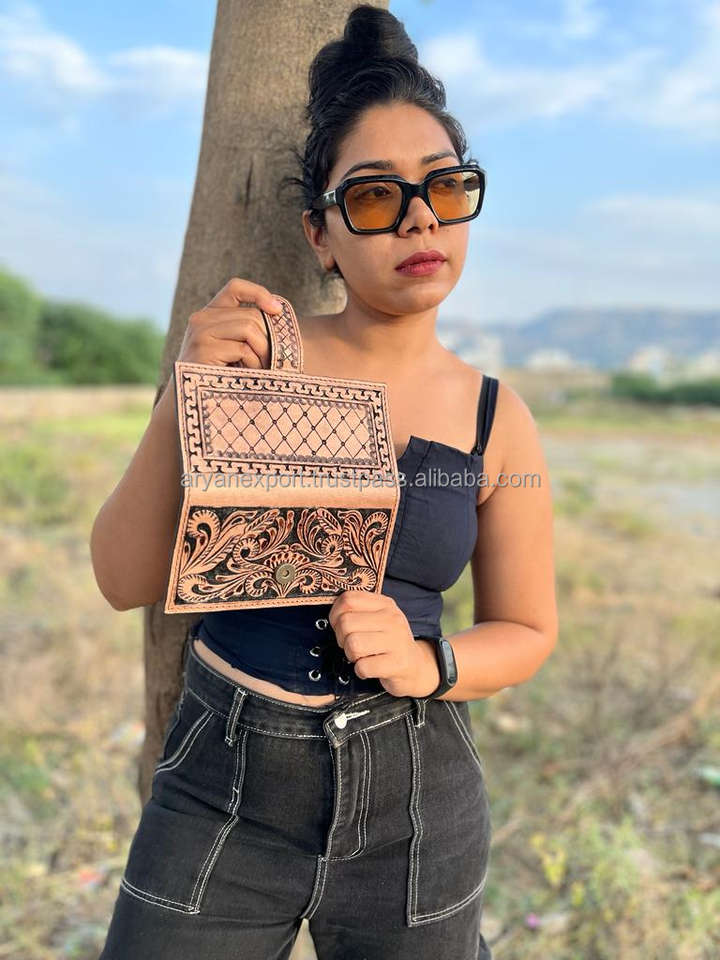 Type:Designer Tooled Leather Clutch