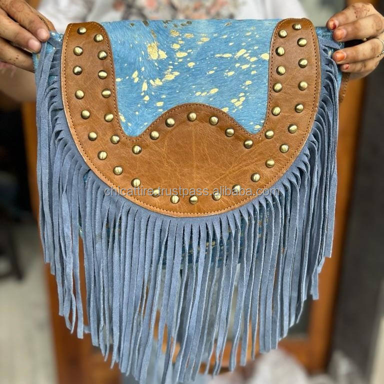 Nouveau Style occidental daim métallisé fourrure frange sac à main femmes élégantes bleu ciel couleur frange sacs de haute qualité femmes