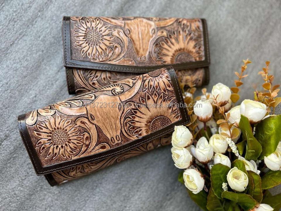 Product name:Aztec Tooled Leather Handbag &Tooled Clutch Combo Set