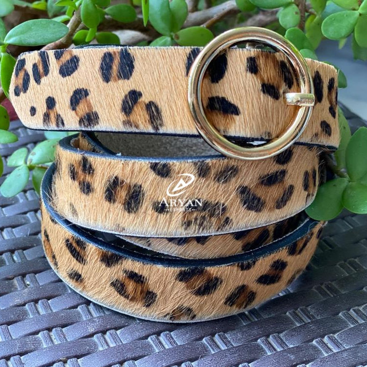 Ceinture à boucle durable en cuir véritable imprimé léopard élégant