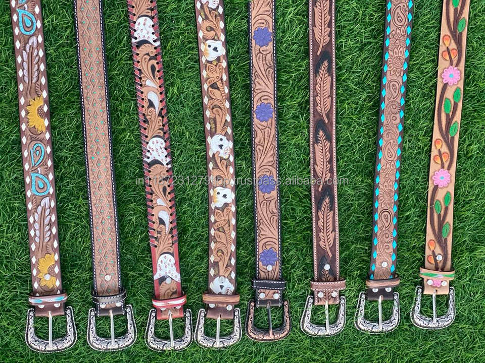 Nouveau Western élégant véritable véritable cuir repoussé à la main peinture florale ceintures de créateur de haute qualité en cuir fait à la main unisexe ceinture de taille