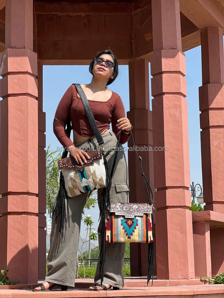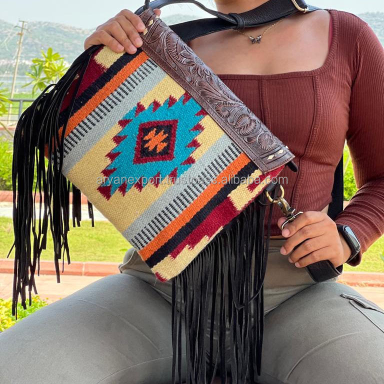 Material:Tooled Aztec Leather Bag