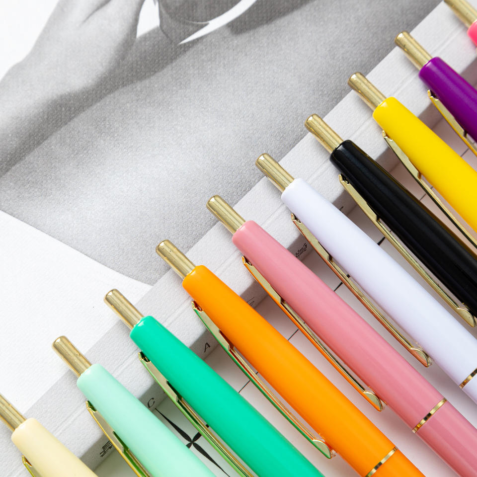 Stylo à bille en plastique multicolore à pression, vente en gros