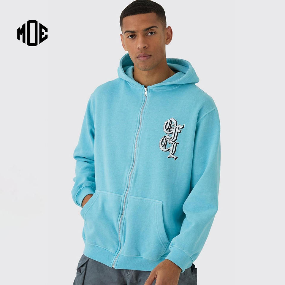 Nouveau sweat à capuche zippé en molleton français 100% coton respirant surdimensionné personnalisé avec impression d'écran en gros 500GSM Logo Sweat à capuche zippé pour hommes