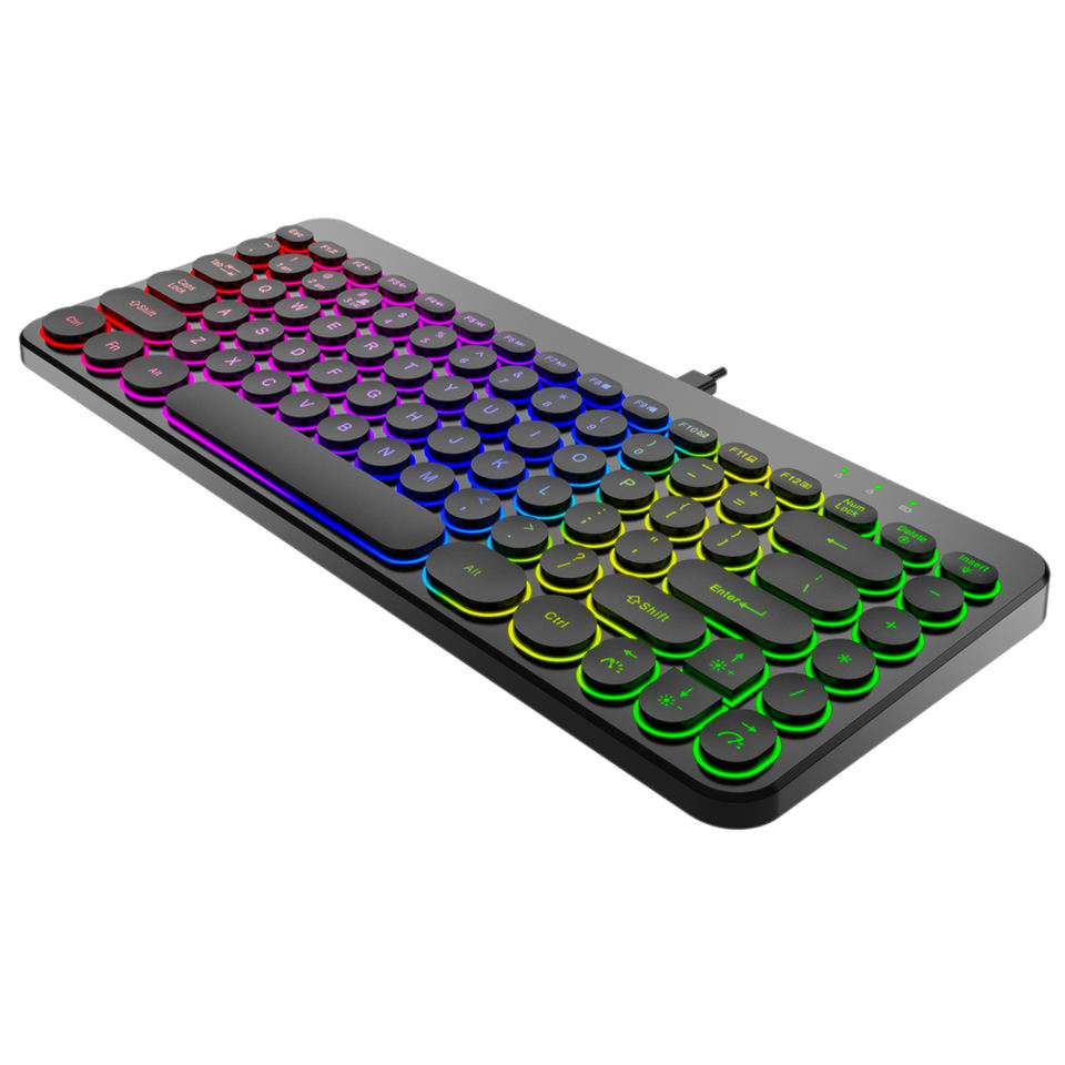 Nouveau clavier sans fil ergonomique pour tablette, rétroéclairé RGB, avec touches rondes rétro, 2.4G et Bluetooth, commutation 3 appareils, pour le gaming (vente en gros)