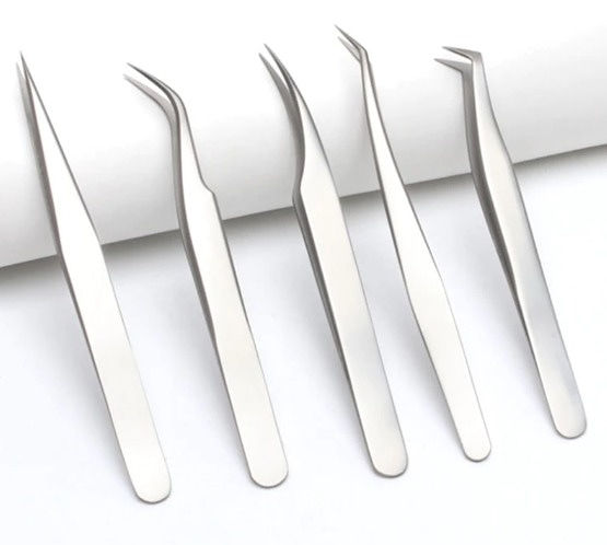 New Wholesale Fine Quality Stainless Steel Eyelash Tweezers Sets Custom Logo Low MOQ Including Straight and Curved Tweezers