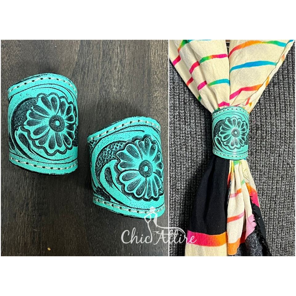 New Wholesale Western Design Scarf Holder Custom Tooled Leather Wild Rag Slide Keeper Bangle Cuff for Cowboy Cowgirl Accessories