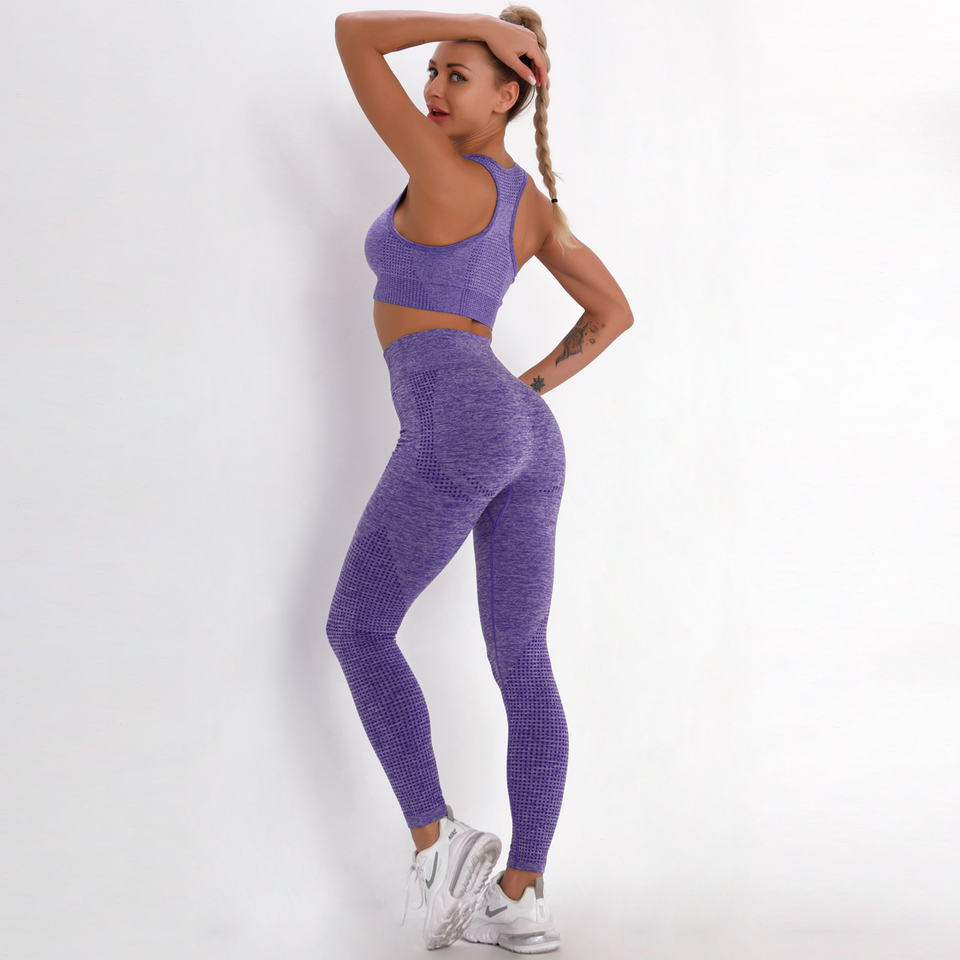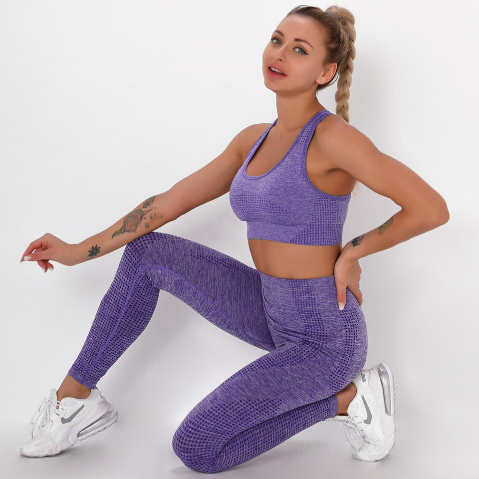 Nouveaux ensembles de fitness de gymnastique sans couture d'hiver soutien-gorge de sport respirant léger et pantalon de yoga avec motif solide écologique