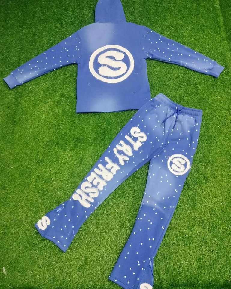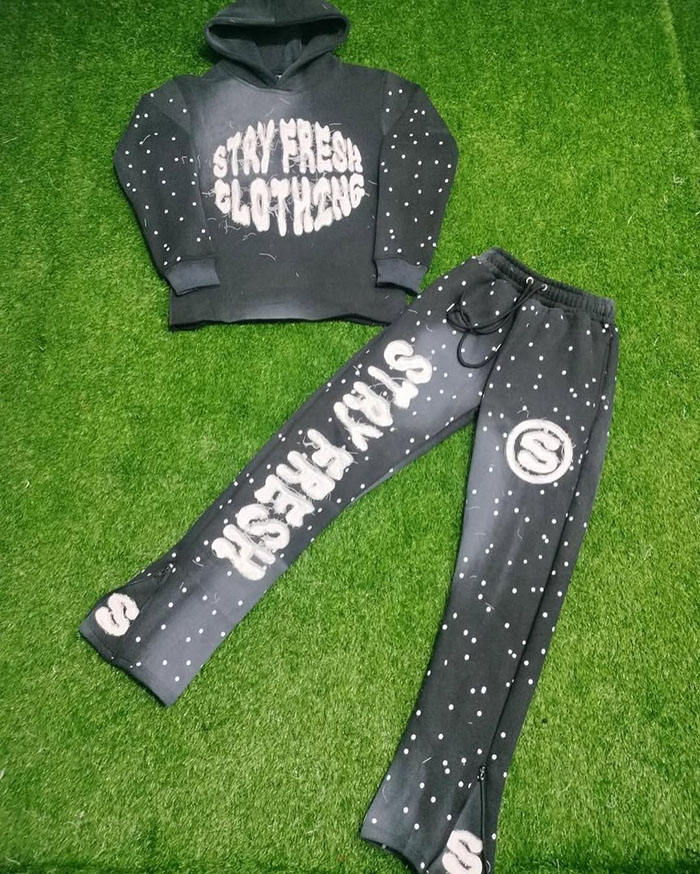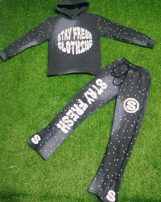 Nouveau hiver soleil fondu en détresse broderie Flare pantalon coton costumes strass ourlet brut unisexe personnalisé Street Wear survêtements