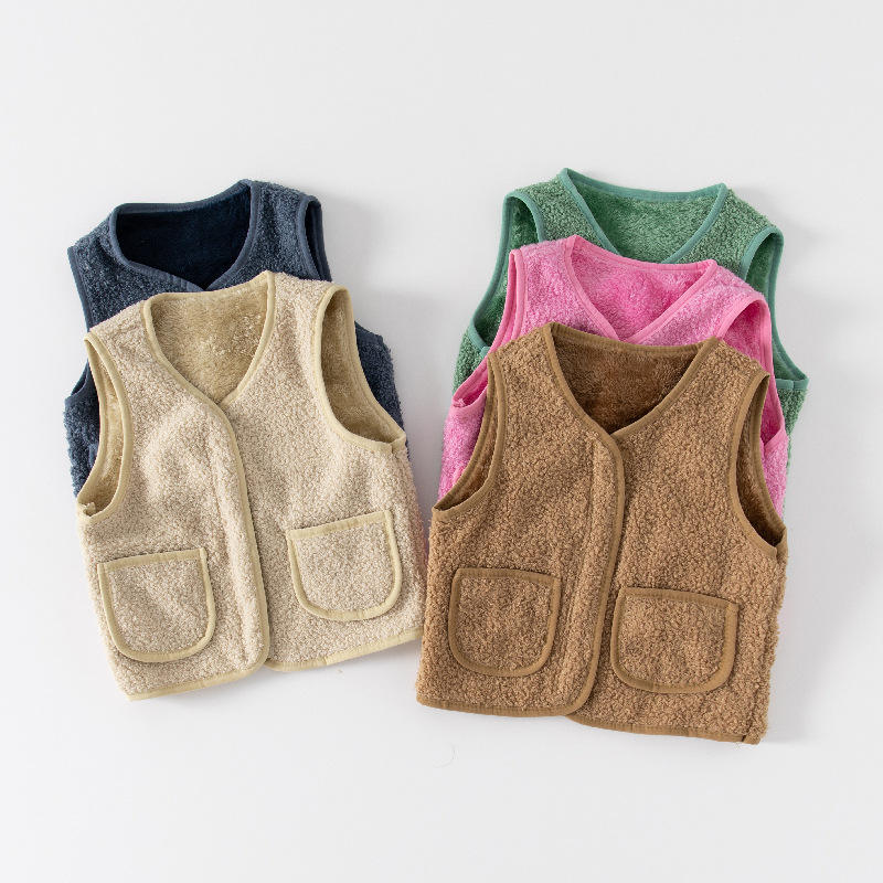 Gilet d'hiver chaud et résistant au froid pour enfants, nouveau gilet en peluche monochrome sans capuche, gilet décontracté à la mode pour enfants