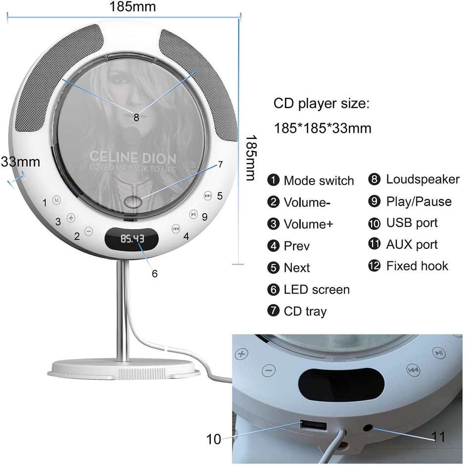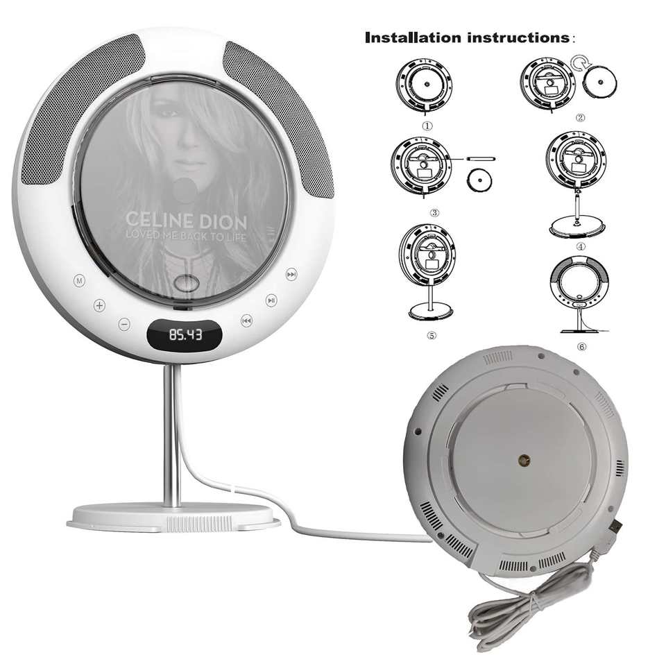 Nouveau lecteur CD sans fil 360 ° Système audio portable avec écran rotatif, haut-parleur intégré, radio FM, lecteur MP3 USB/TF, pour la maison et le bureau