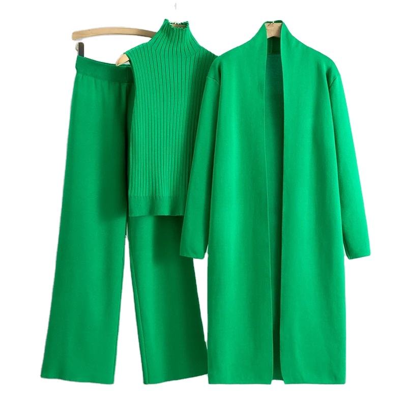 Nouveau femmes printemps automne 3 pièces femmes survêtements mode tricoté pantalon ensemble dames pull costume Vintage mode dames 3 pièces ensemble