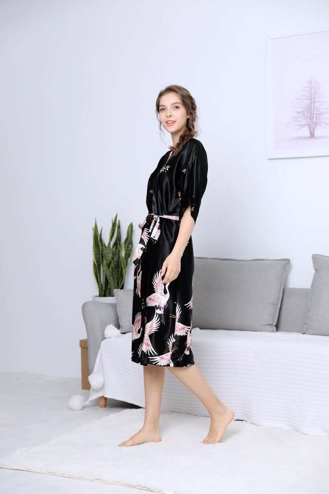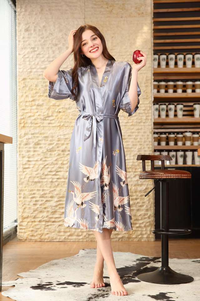 Product Name:New Women Summer Luxurious Middle Sleeve Silk Nightgown