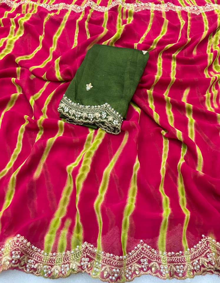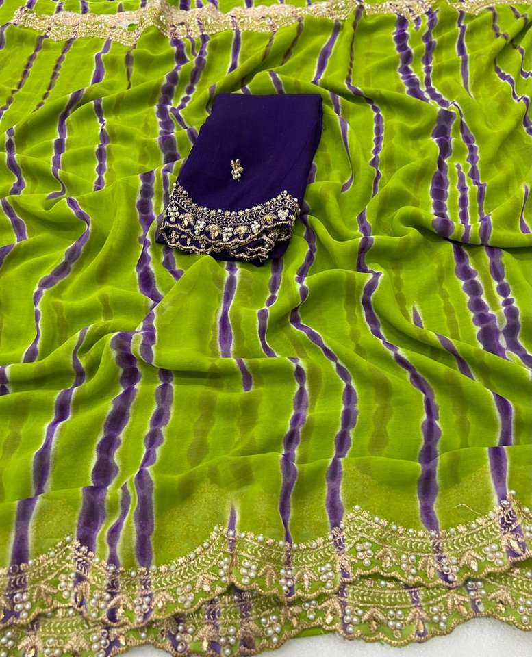 New Women's Chiffon Saree with Beautiful Embroidery Work and Scalloped Edge Border Made in India