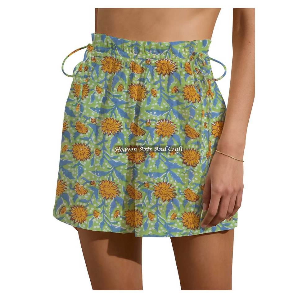 Shorts de week-end 100% coton, imprimés à la main au bloc