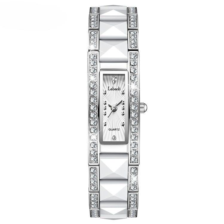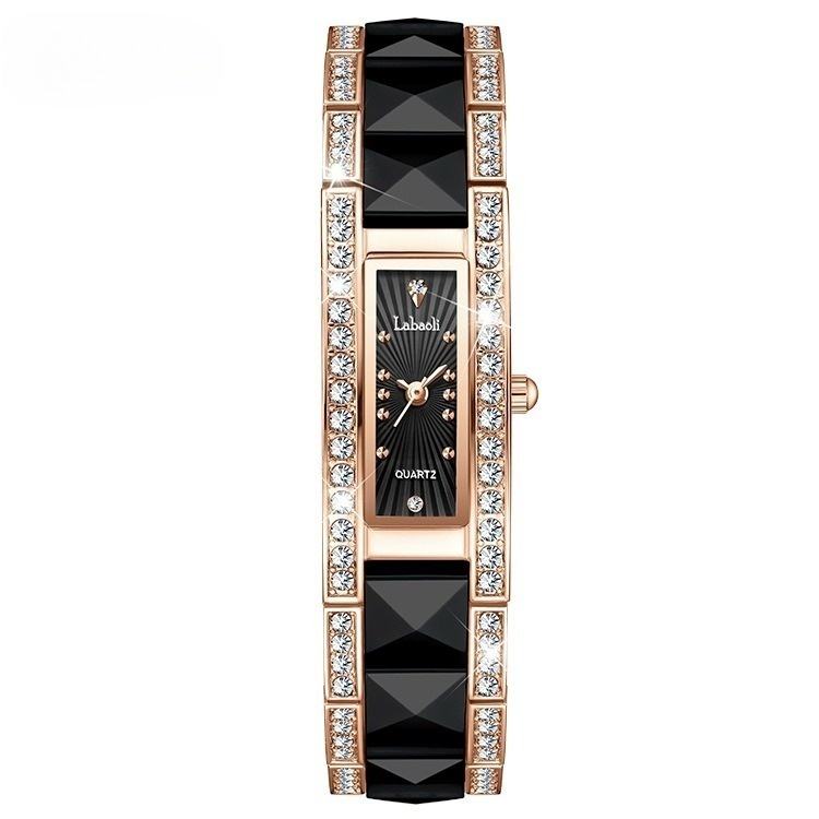 Nouvelle montre pour femme avec bracelet en acier rectangulaire, boîtier en céramique incrusté de cristaux, cadran délicat de 18 mm, montre à quartz étanche pour femme
