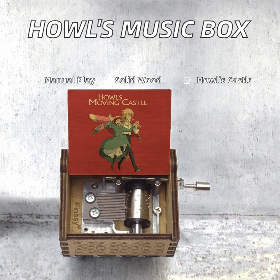 Nouvelle Boîte à Musique Carrée en Bois à Manivelle, Motif Château Ambulant de Howl, Chant de Vie, 15 Sons, Cadeau de Noël et d'Anniversaire pour Enfant