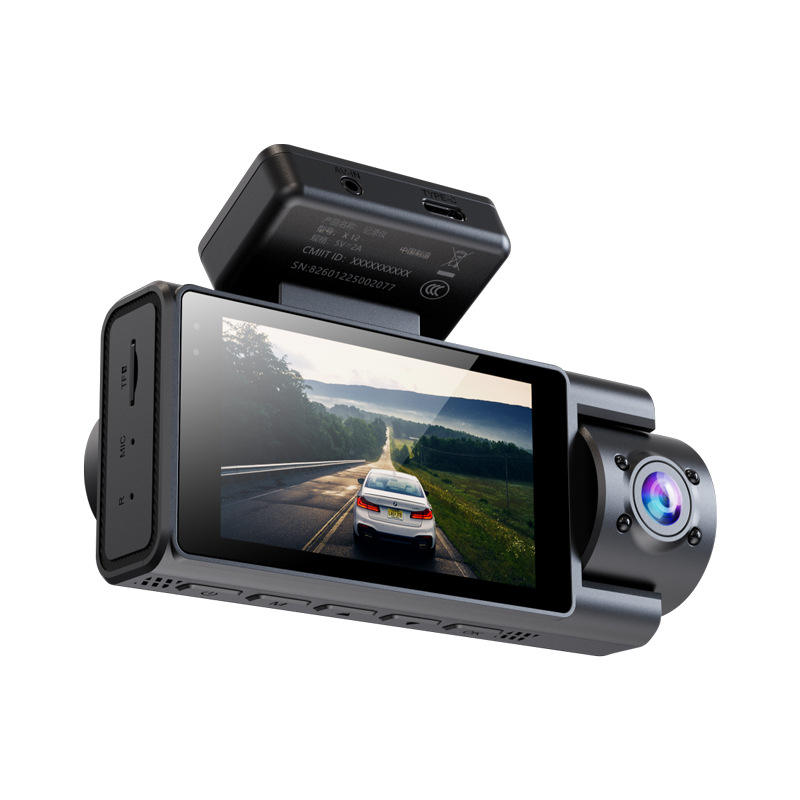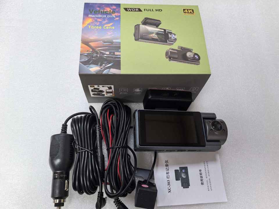 Nouvelle caméra embarquée WiFi XC303 3 pouces triple canal 4K avec vision nocturne, grand angle, enregistrement en boucle, détection de mouvement, moniteur de stationnement